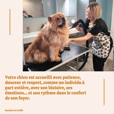 Résultat ? Un chien plus détendu, plus confiant… et un joli toilettage qui se passe dans de bien meilleures conditions.