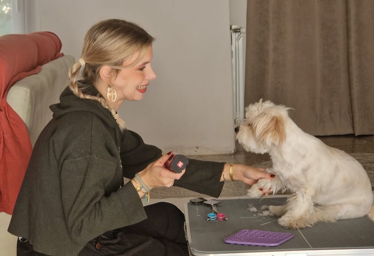 Intervenante certifiée en toilettage comportemental (méthode TCAP), j’utilise les principes des soins coopératifs pour que chaque séance devienne un moment calme, sécurisant et positif. On prend le temps qu’il faut, on avance pas à pas, et surtout : on ne force jamais.