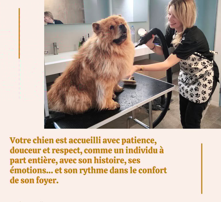Cette méthode de toilettage s’adresse aux chiens dits "difficiles", sensibles, craintifs, jeunes, peu habitués aux soins… mais aussi à ceux qui ont simplement besoin qu’on prenne plus de temps pour eux.