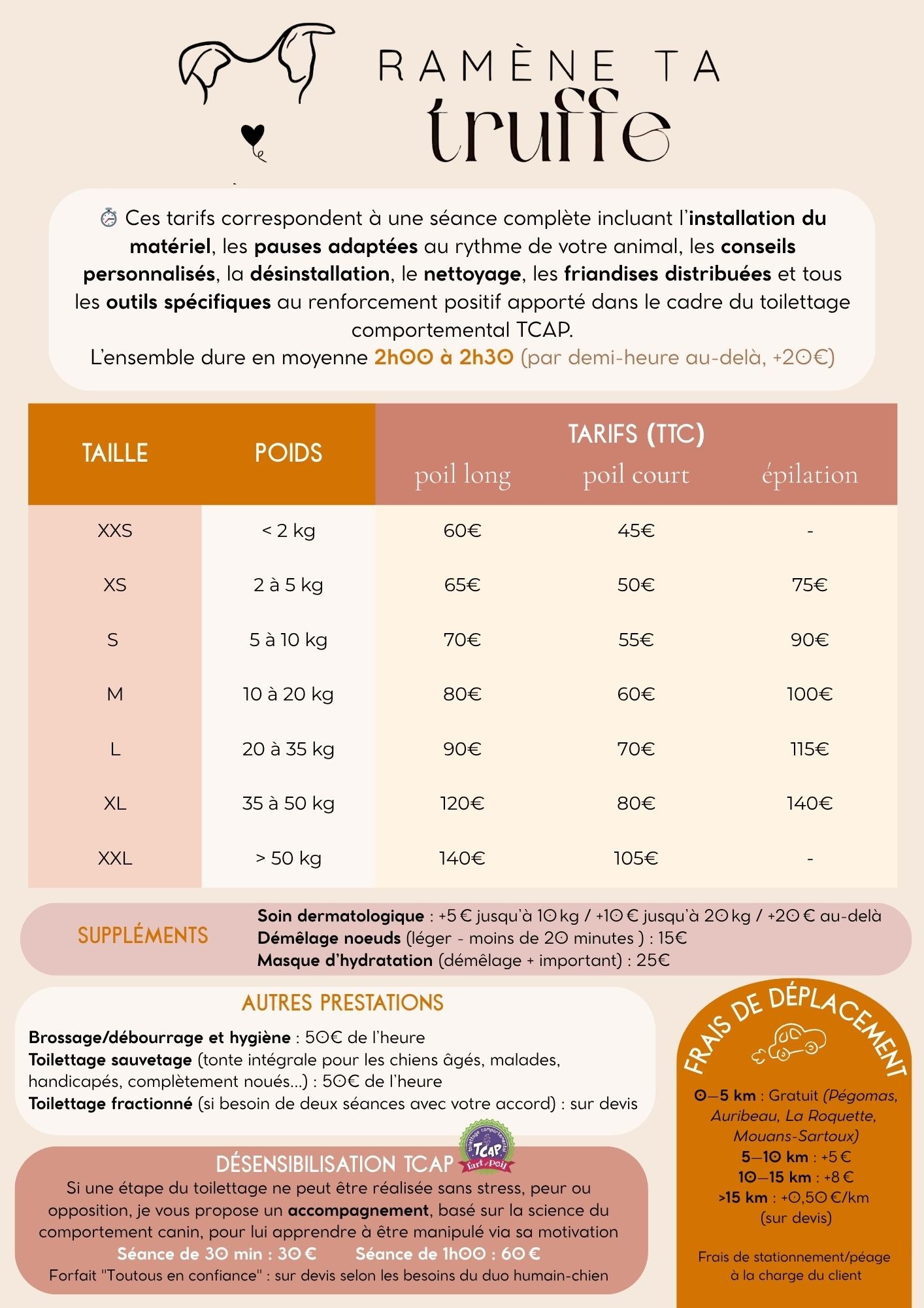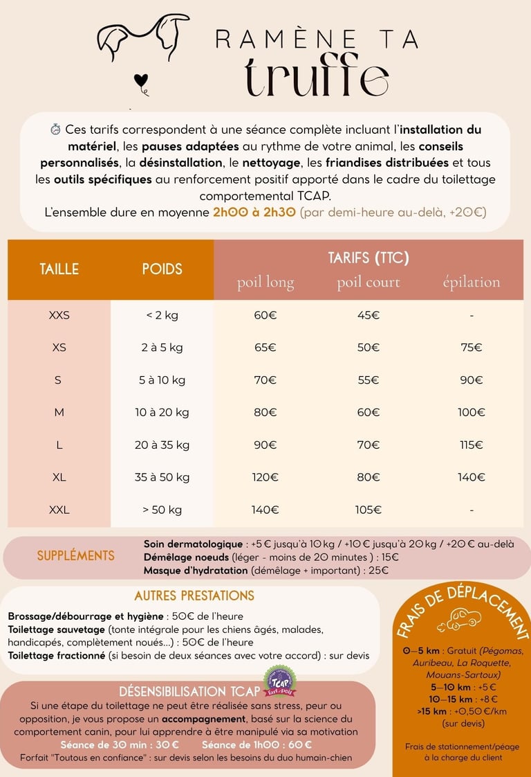 Service de toilettage spécialisé en toilettage comportemental TCAP à votre domicile pour tous les chiens dans le département des Alpes-Maritimes (06) à Pégomas, la Roquette-sur-Siagne, Auribeau-sur-Siagne, Grasse, Mougins, Mouans-Sartoux, Mandelieu-La Napoule...