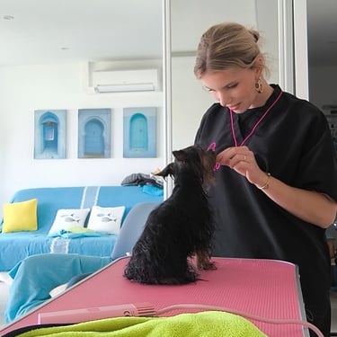 Mon approche n’est pas seulement technique, elle est humaine et attentive : je prends le temps de construire un lien avec chaque chien, de comprendre son histoire et son caractère, pour qu’il vive le toilettage comme un moment positif. Même un chien stressé ou anxieux peut apprendre à coopérer, étape par étape, grâce à la patience, au renforcement positif et à la valorisation de chaque progrès.