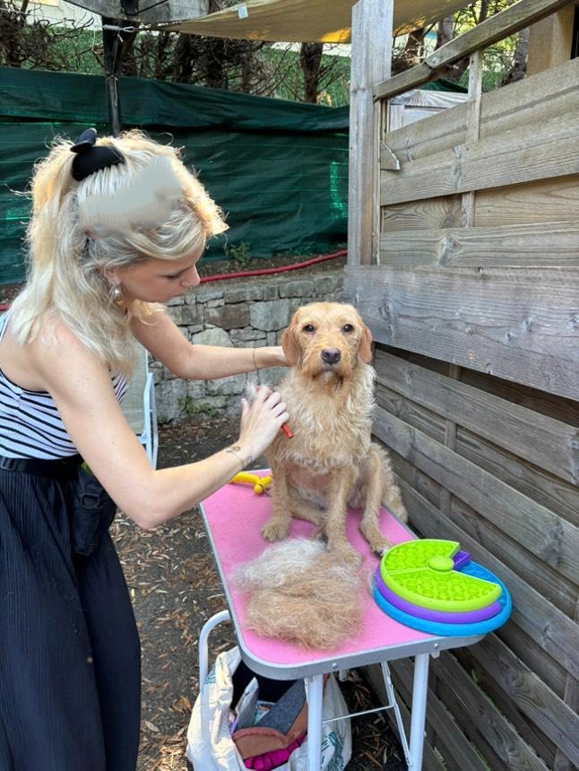 Même dans un cadre classique, je veille à respecter le confort de votre loulou. Les manipulations sont douces, le rythme est posé, et l’objectif est toujours le même : un chien propre, à l’aise et beau… sans stress inutile.